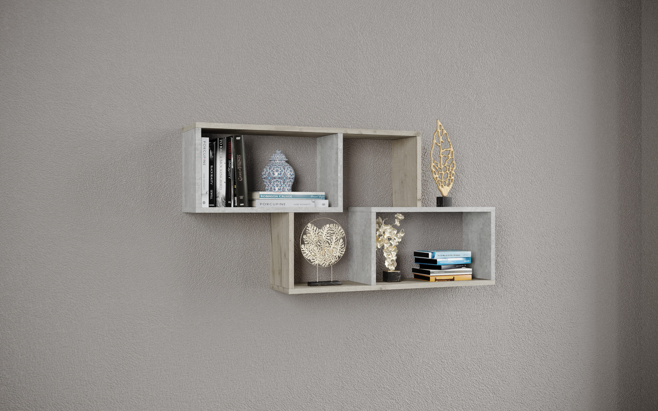 Полка навесная ПН-3 дуб крафт серый/цемент