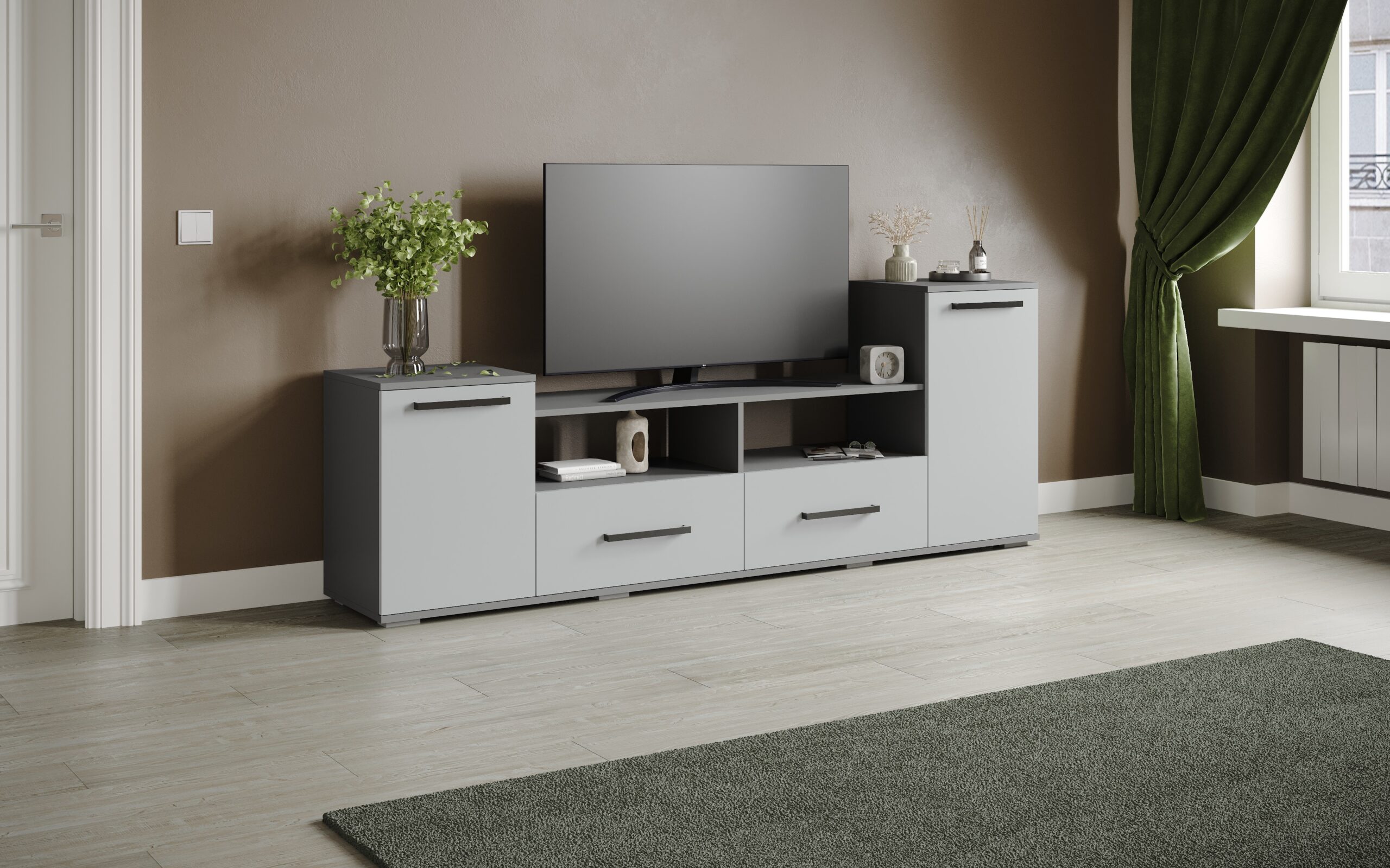 Тумба ТВ Парус-2 графит серый/серый камень