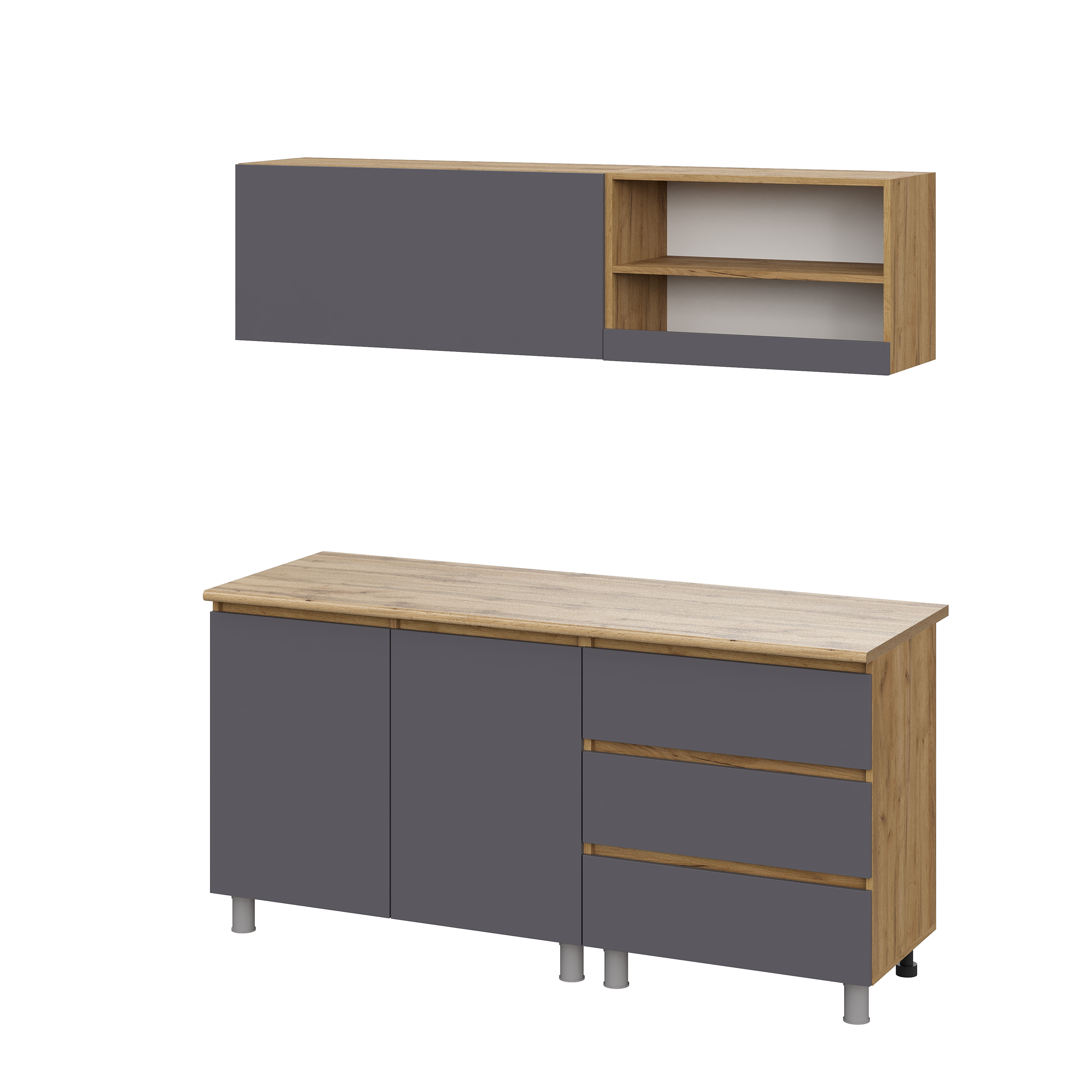 Люмо Кухонный гарнитур со столешницей 1700х1900х600, ДУБ КРАФТ ЗОЛОТО/СЕР