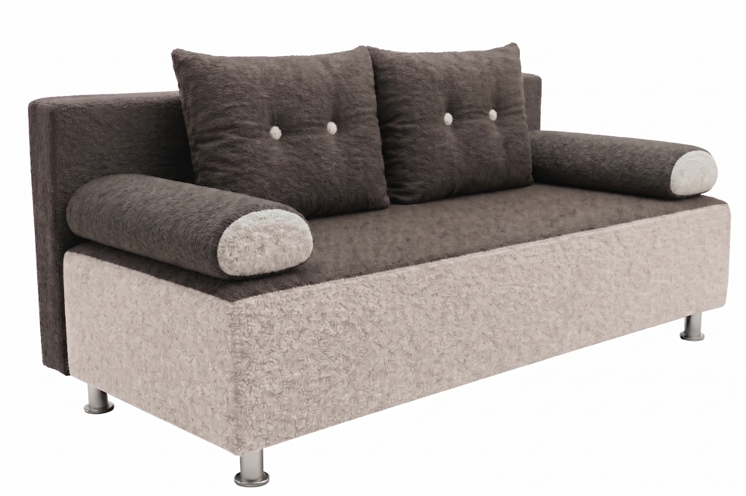 Диван еврокнижка без подлокотников с оригинальным кроем ткани. Подушки двухсторонние с декоративными пуговицами, придающими дивану легкость и эстетичность. Диван идеально подойдет как для детских комнат, так и для маленьких помещений (кухня, дача и т.д.).