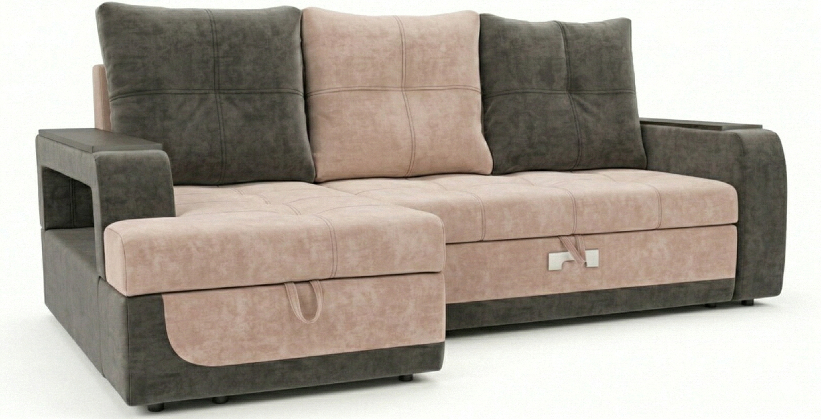 Диван угловой Лотос 2ДКУ левый Тк.Siesta Milk + Siesta Coffee (декор венге) 5 кат Апогей