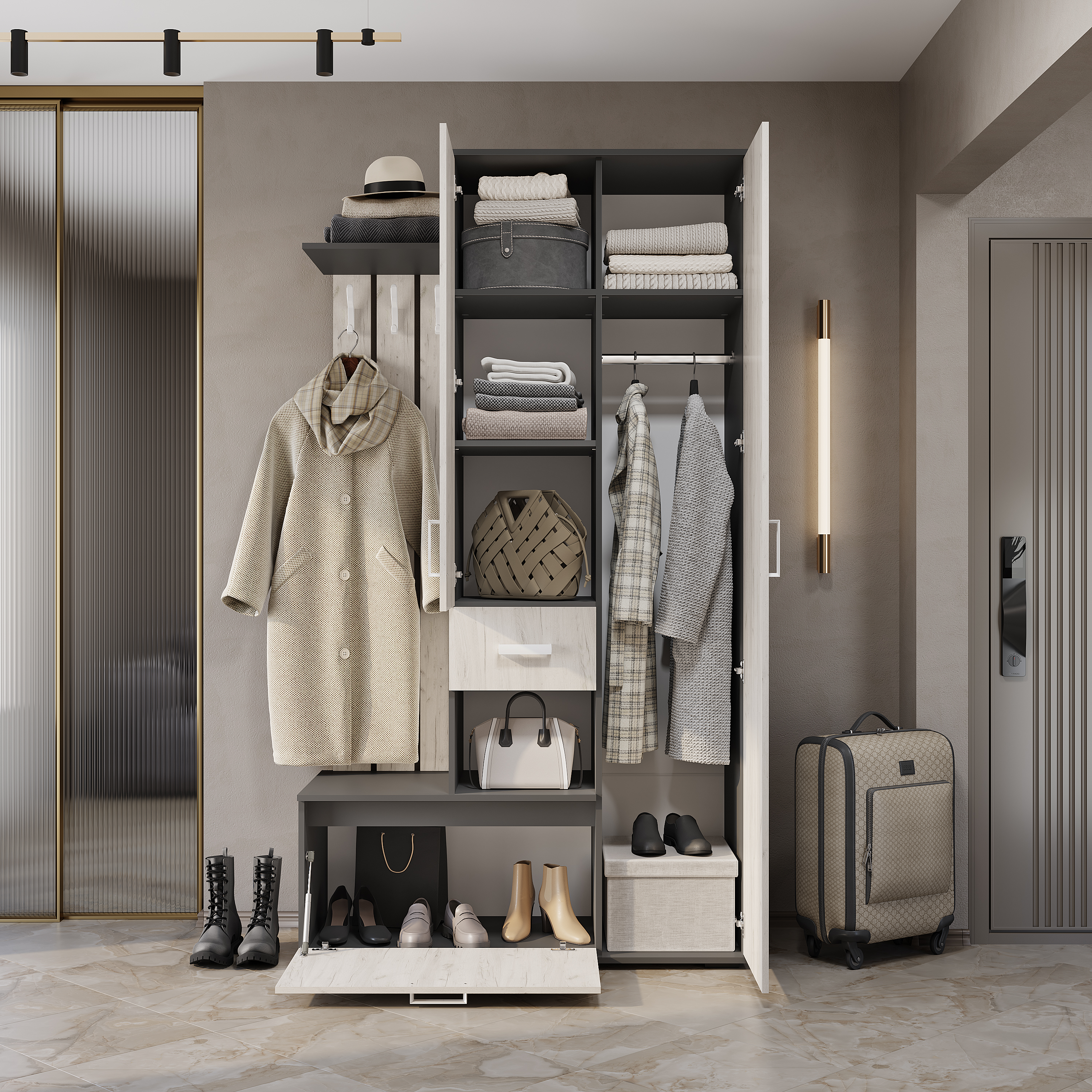 Прихожая "Лира" ПР-04 Графит/Дуб крафт белый