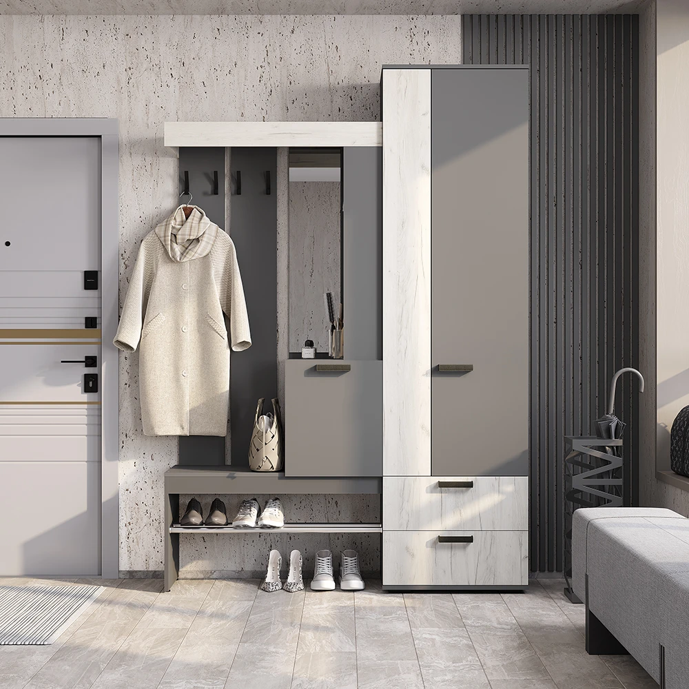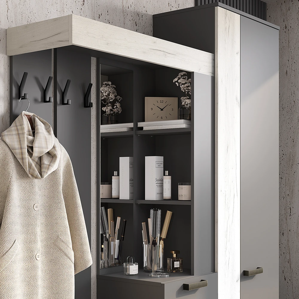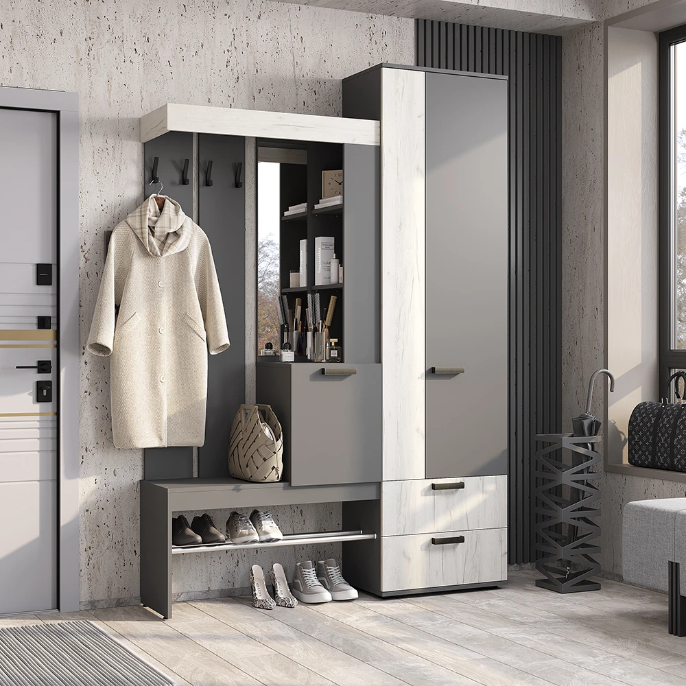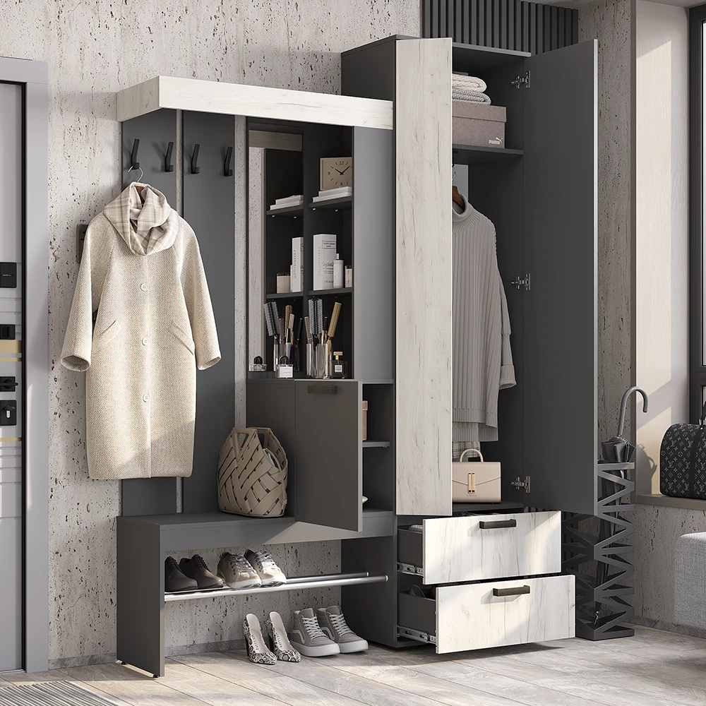 Прихожая "Трамп" Графит/дуб крафт белый