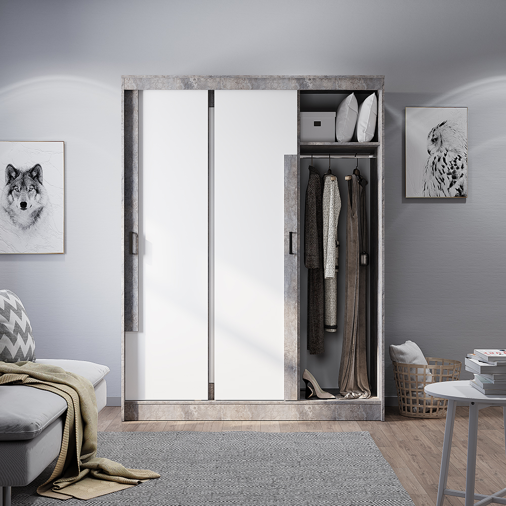Шкаф-купе "Смарт" ШКК-06 Цемент светлый/белый