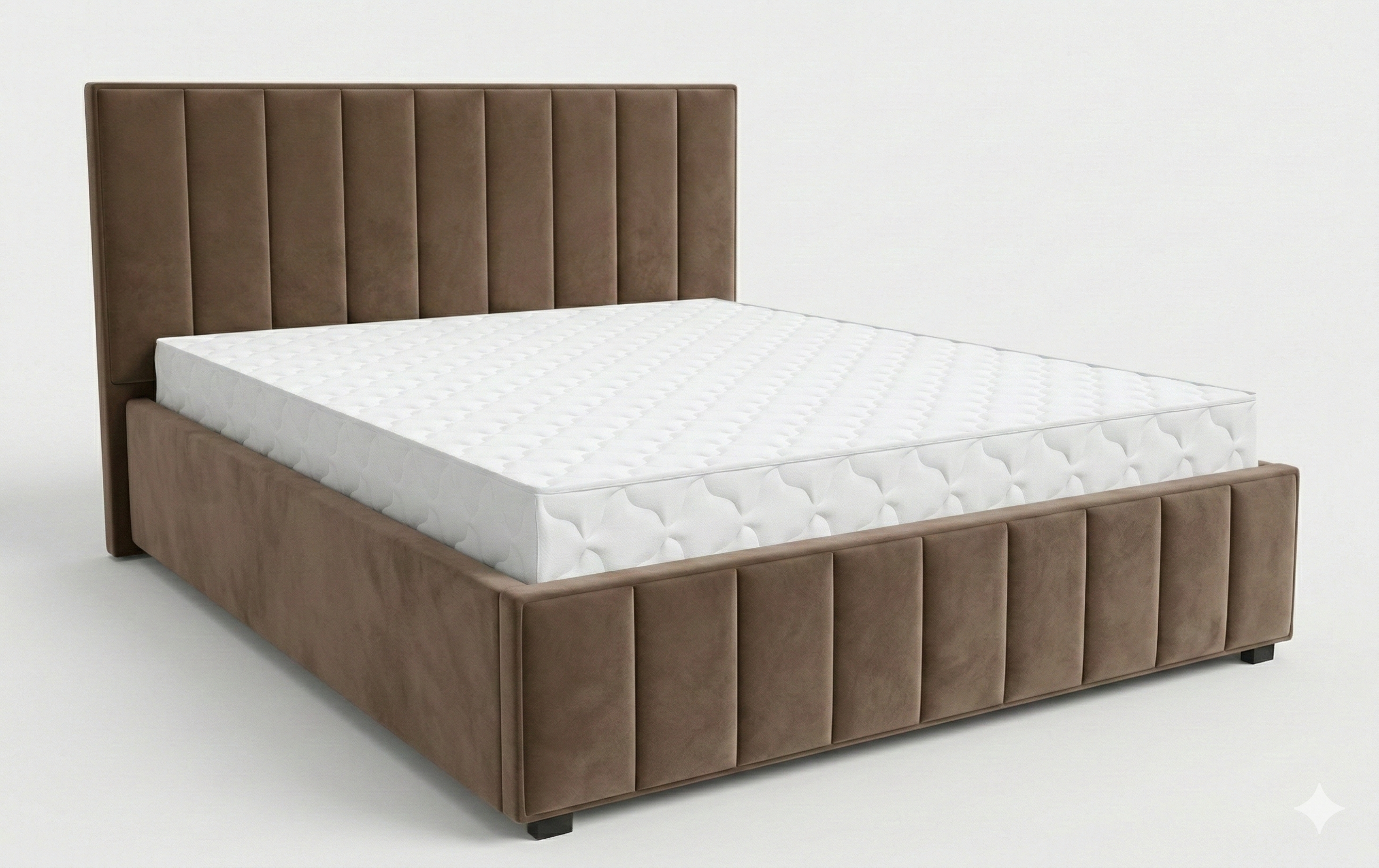 Интерьерная кровать из серии Кордова с подъемным механизмом и цельносварным ортопедическим основанием, а также настилом из ЛДСП для бельевого отсека.
